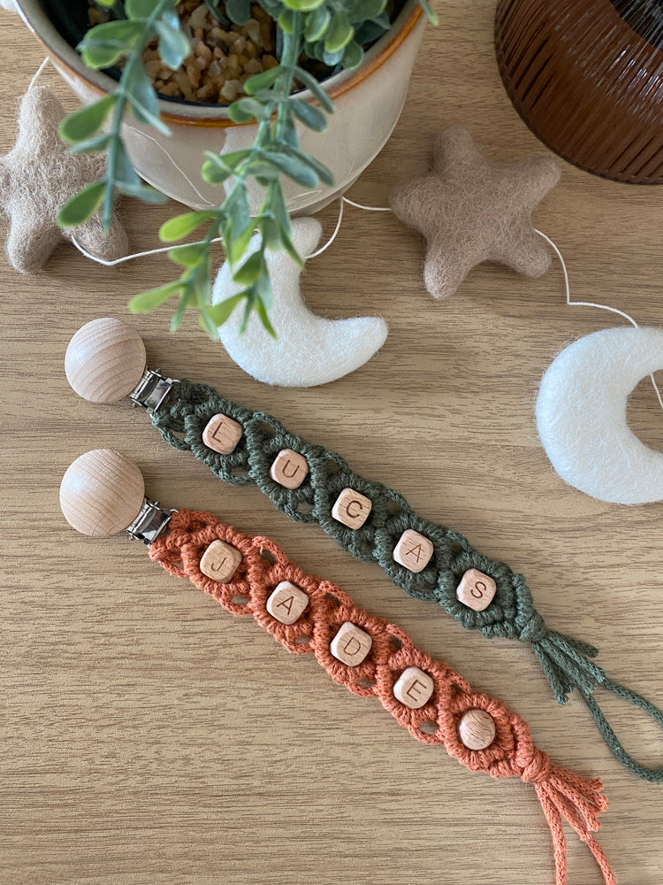 Attache tétine macramé avec PRENOM ( Délai de confection 15 jours )