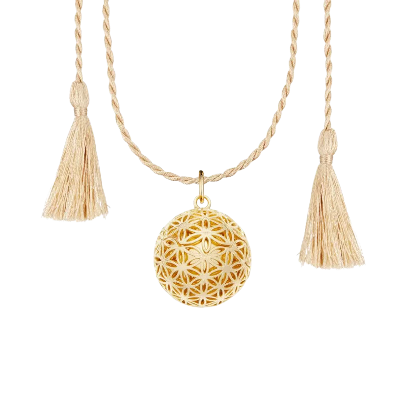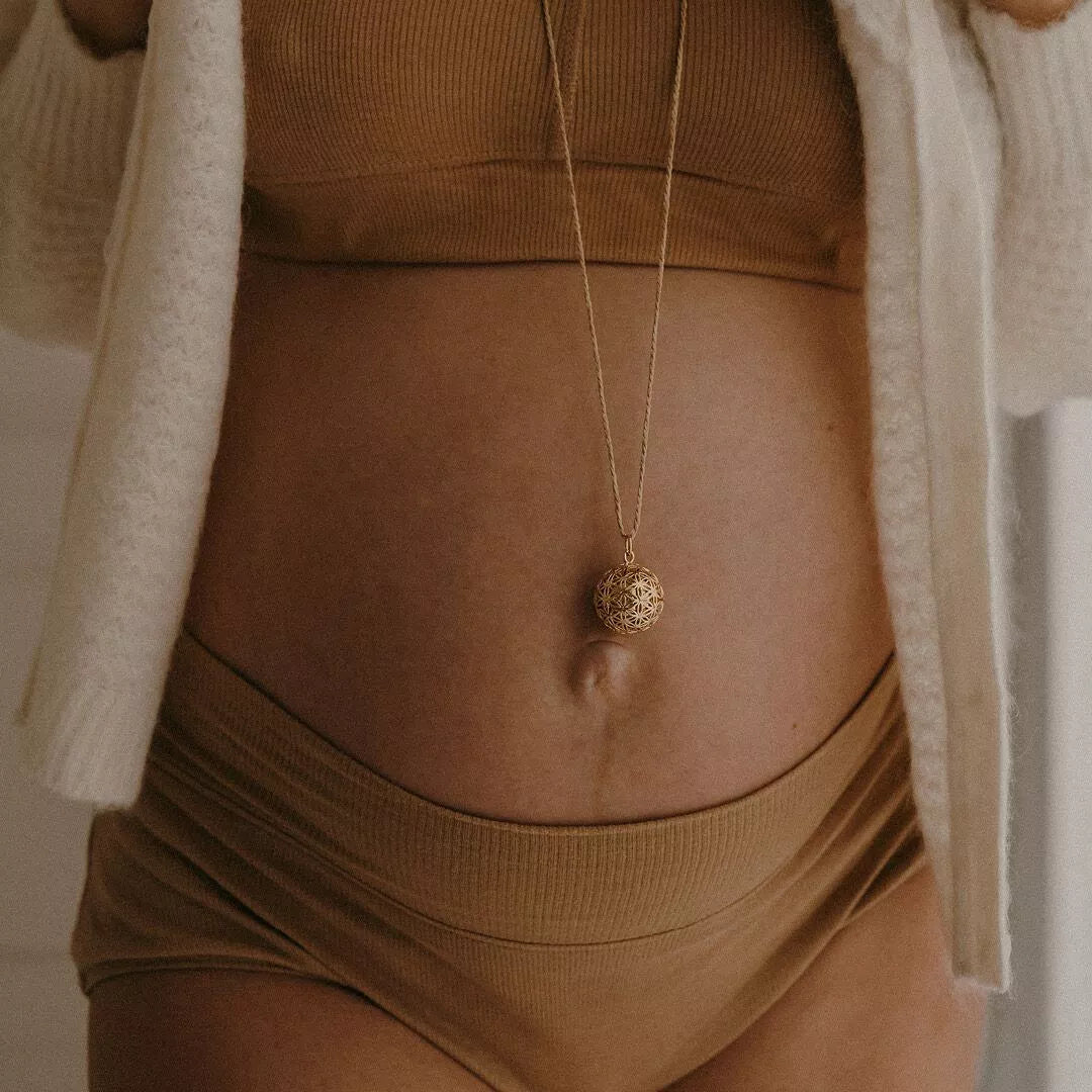 Ce magnifique bola de grossesse est délicatement gravé du symbole de la Fleur de Vie, une forme géométrique sacrée qui évoque la création, la croissance et l’énergie vitale universelle. Un bijou chargé de sens à porter tout au long de la grossesse.