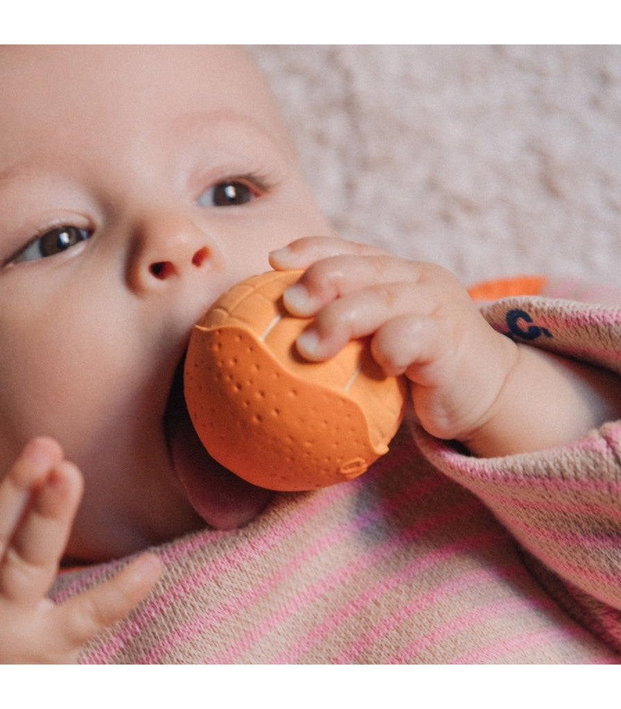 Conçues pour les petites mains, ces fruits colorés éveillent les sens, parfaits pour attraper, mâchouiller et rebondir. Elles peuvent également servir pour jouer à la dinette ou dans le bain !