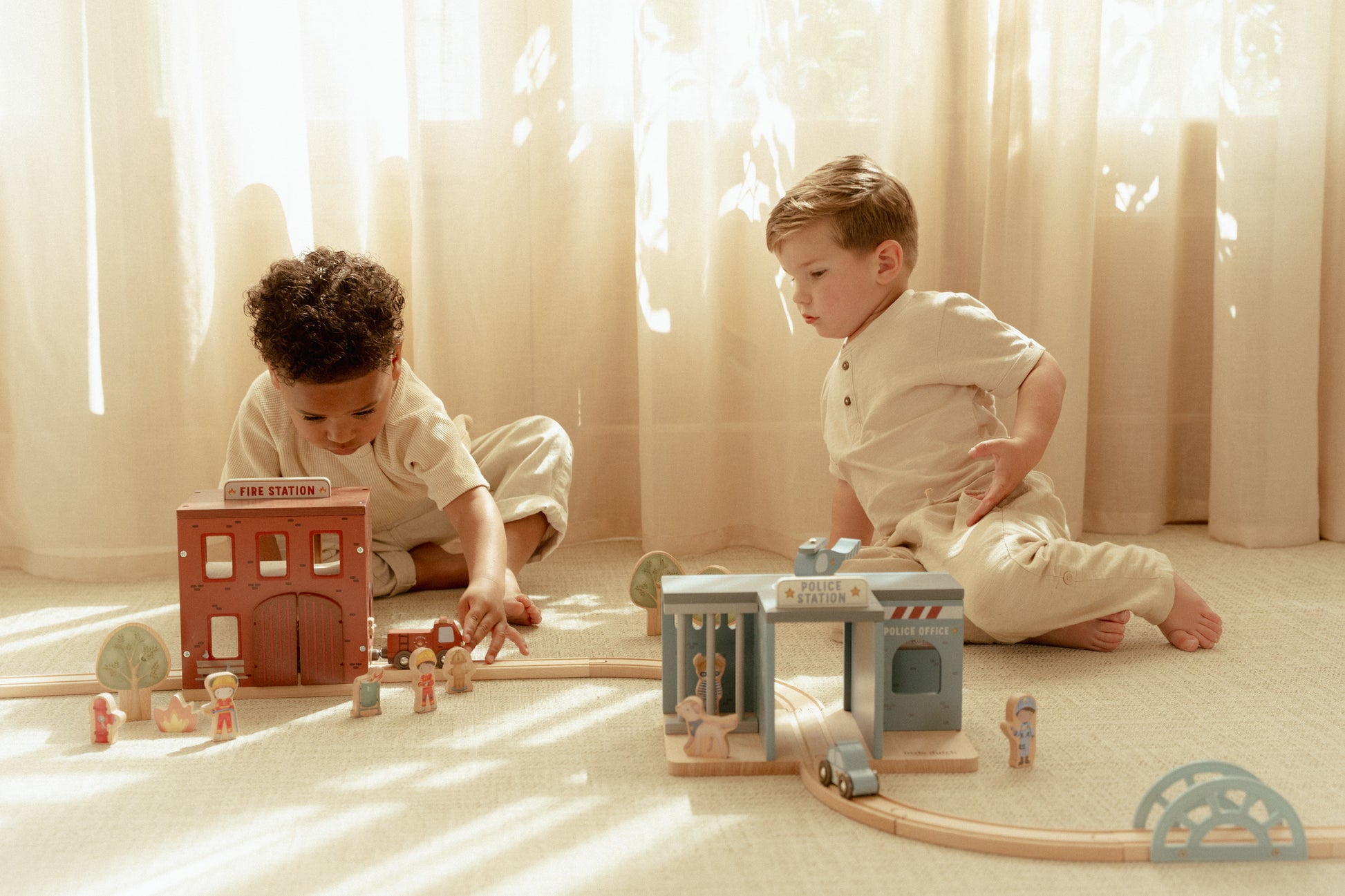 Compatible avec le Circuit XL, le garage, le commissariat de police et la grue de chantier Little Dutch, cette caserne permet de créer une mini-ville complète.