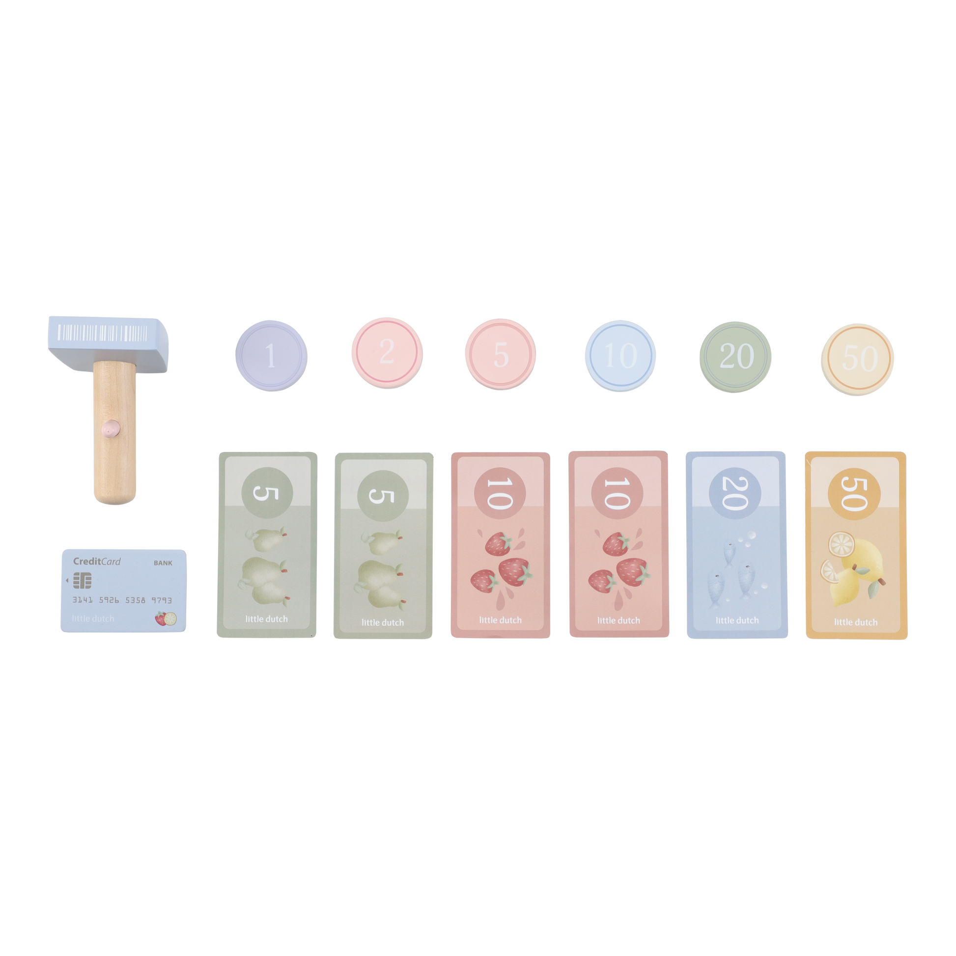 Avec cette jolie caisse enregistreuse en bois , le jeu de marchande devient plus réaliste que jamais. Elle est équipée d’un scanner, de boutons, d’un tiroir-caisse pour les pièces et billets, ainsi que d’un lecteur de carte pour imiter les paiements comme dans un vrai magasin.