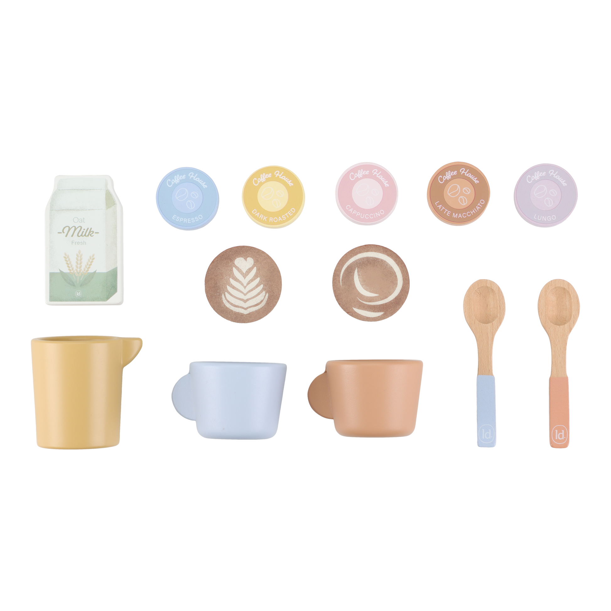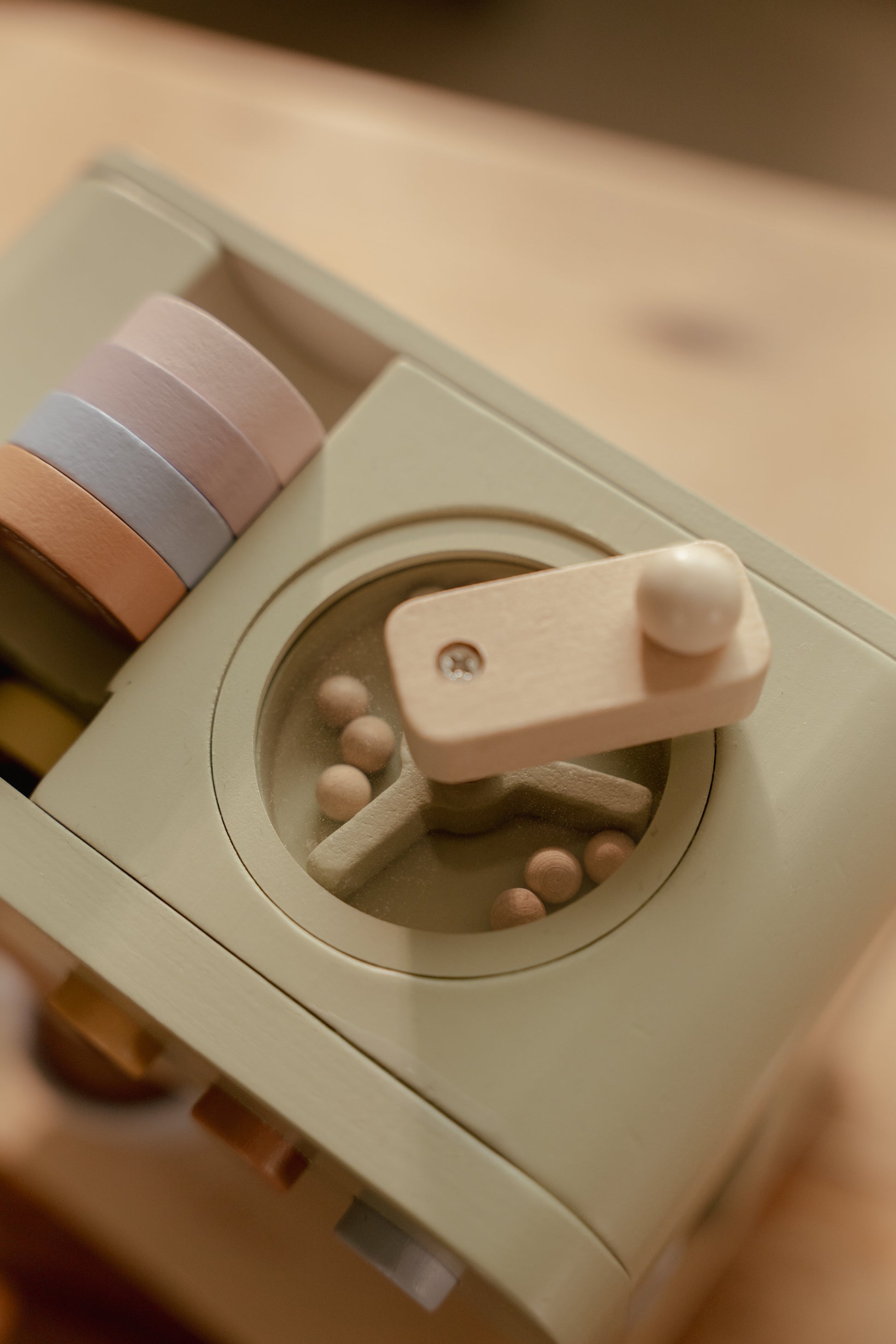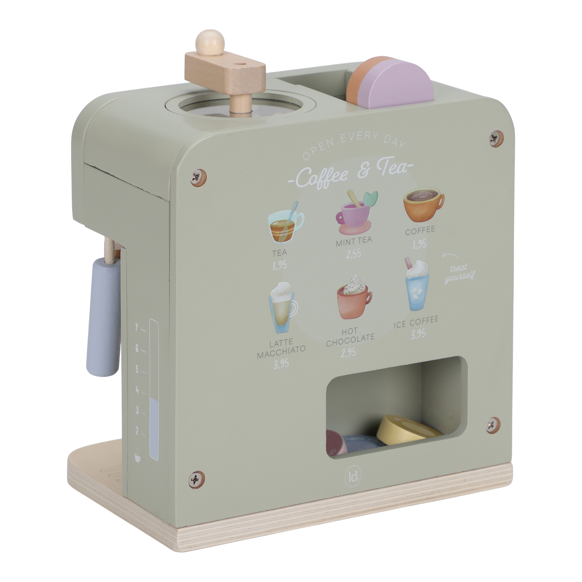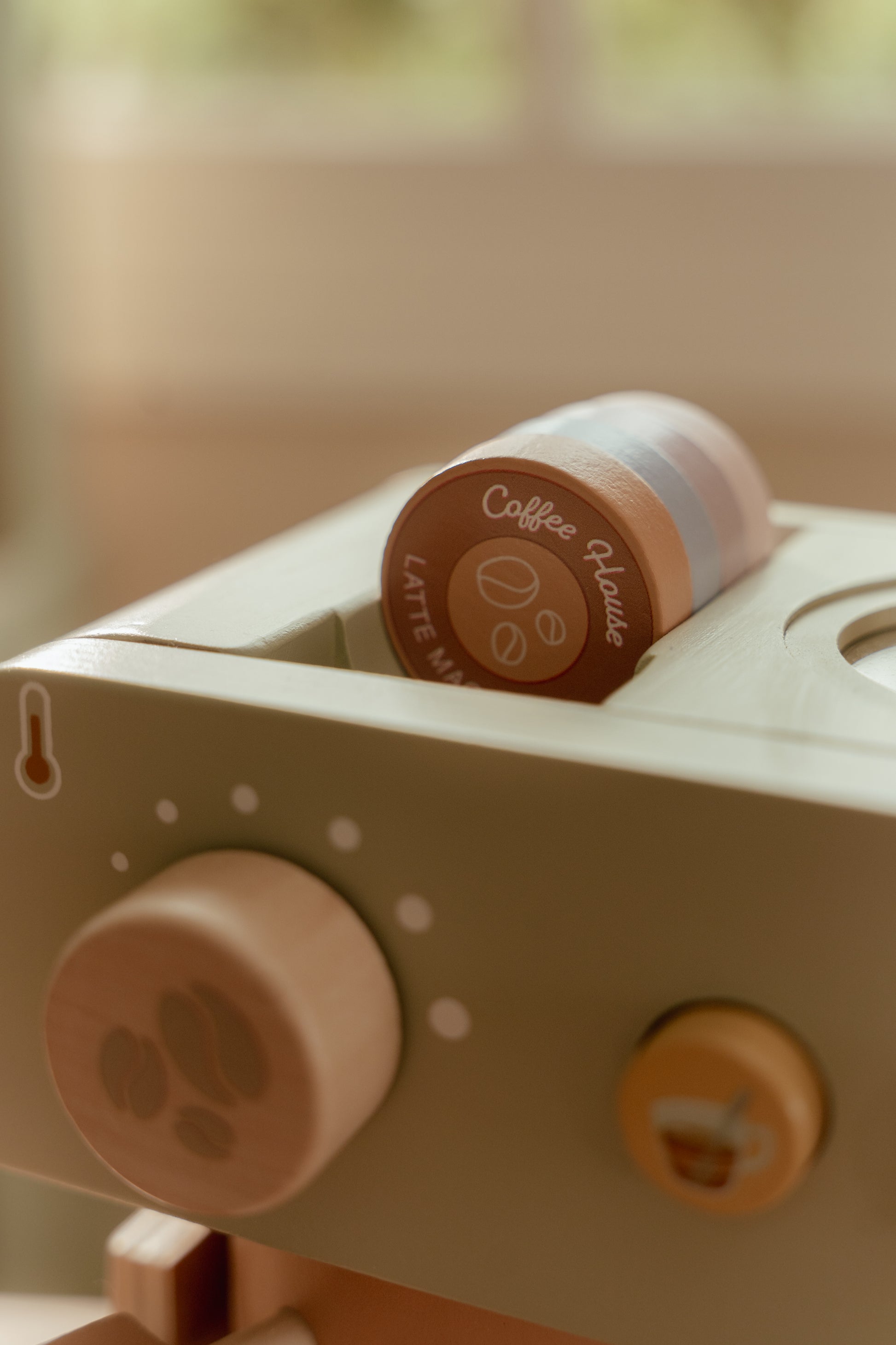 Avec cette machine à café en bois , les petits baristas peuvent préparer leurs boissons comme les grands.